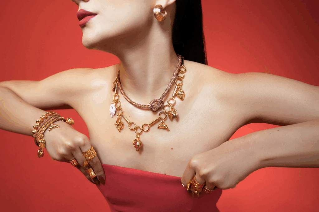 Amama offers handcrafted, fast-fashion jewellery that is often inspired by vintage and global aesthetics. The brand features intricate designs using semi-precious stones, pearls, and mixed metals to create bold necklaces, earrings, and rings. Amama has a strong celebrity following and is popular for providing statement looks at accessible price points.