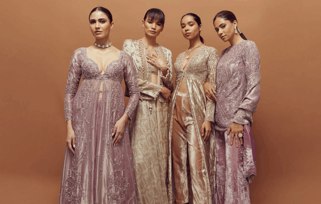 A favorite among Bollywood stars, the Manish Malhotra website is the go-to for high-octane glamour and cinematic bridal looks. Expect lavish, richly sequined lehengas, dramatic gowns, and exquisite pastel collections. His work is known for innovative fabrics and stunning, modern cuts that are perfect for Sangeet, Cocktail, and Reception events. It’s the site to visit for a truly dazzling and show-stopping ensemble.